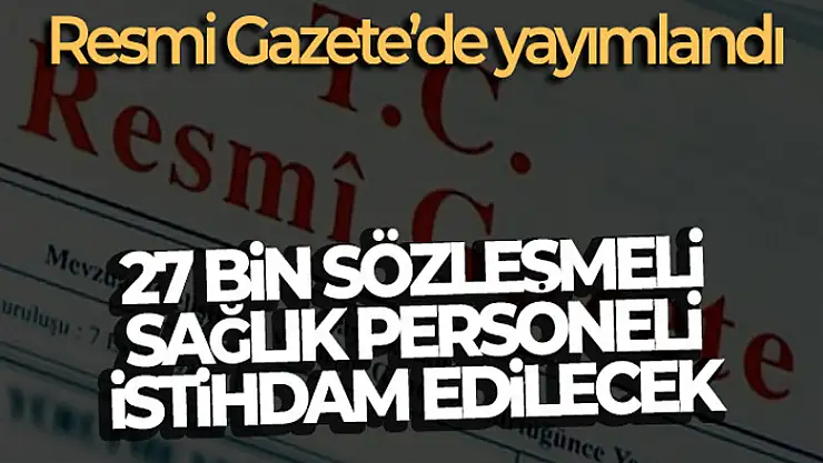 Cumhurbaşkanı Recep Tayyip Erdoğan'ın imzasıyla Resmi Gazete'de yer alan karara göre, eleman temininde güçlük çekilen yerlerde ve hizmet dallarında sağlık hizmetlerinin etkili ve verimli bir şekilde yürütülebilmesi amacıyla 2023 yılında uygulanmak üzere istihdam edilecek sözleşmeli sağlık personeli sayısı 27 bin olarak belirlendi.
