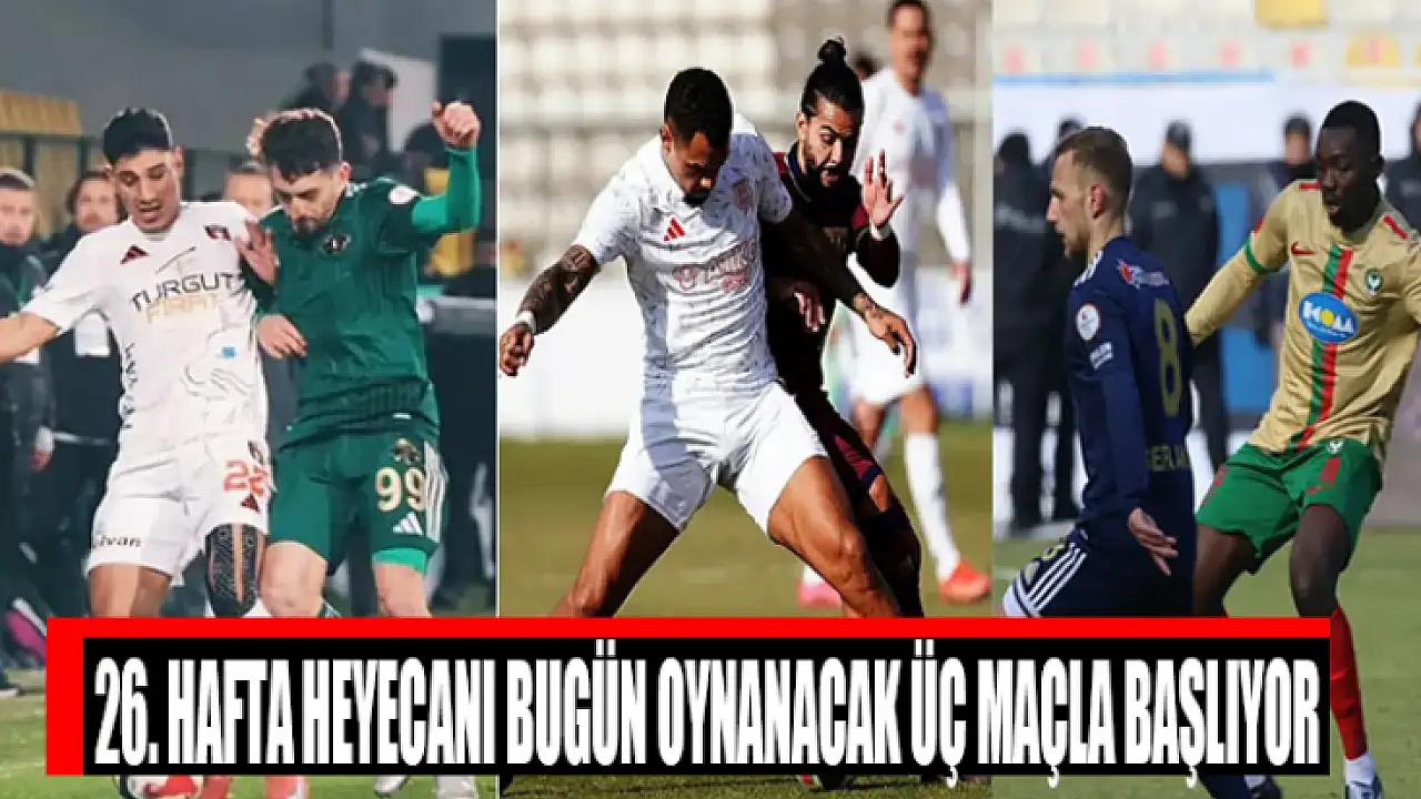 TFF 1. Lig'de 26. hafta, bugün oynanacak üç karşılaşmayla başlıyor. Haftalar ilerledikçe zirve mücadelesi, play-off yarışı ve küme düşme hattındaki çekişme daha da artarken, haftanın açılış gününde futbolseverleri önemli karşılaşmalar bekliyor. Günün maç programında Hatayspor–Iğdırspor, Ümraniyespor–Boluspor ve İstanbulspor–Erokspor mücadeleleri yer alıyor.