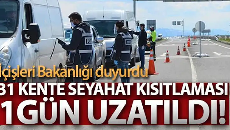 31 kente seyahat kısıtlaması 1 gün uzatıldı