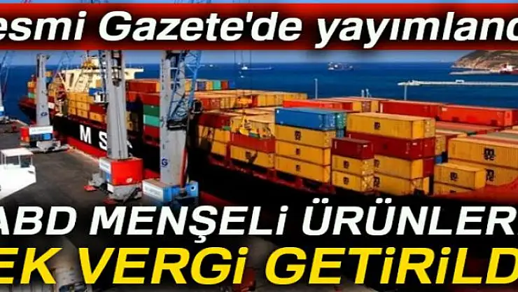 Resmi Gazete'de, "ABD menşeli bazı ürünlerin ithalatında ek mali yükümlülük uygulamasına dair kararda değişiklik yapılmasına ilişkin karar" başlıklı karar yayımlanarak yürürlüğe girdi.