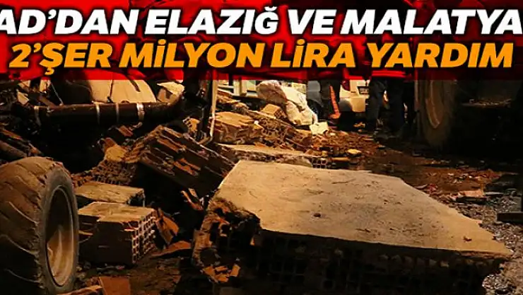 AFAD Elazığ ve Malatya valiliklerine 2'şer milyon lira yardım ödeneği gönderdi