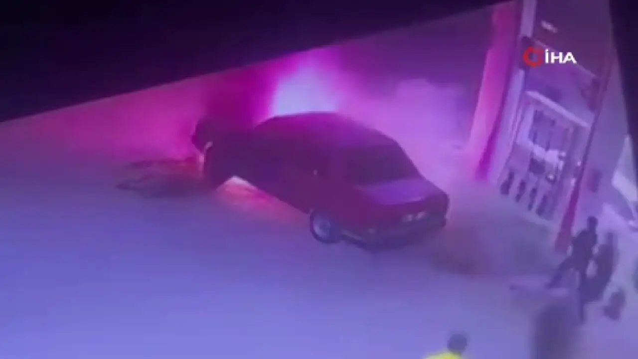 Edinilen bilgilere göre, sürücü, yakıt aldıktan sonra aracını çalıştırdığı sırada motor bölümünde aniden alev yükseldi. Olay anı, petrol istasyonunun güvenlik kameralarına da yansıdı. Görüntülerde sürücünün ve yanındakilerin ilk anda büyük bir panik yaşadığı, ardından istasyon çalışanının hızla müdahale ettiği görüldü. İstasyonda görevli çalışan, yangın tüpüyle araca anında müdahale ederek alevlerin büyümesini engelledi. Kısa sürede kontrol altına alınan yangın sonrası sürücü ve beraberindekiler büyük bir rahatlama yaşadı. Yapılan incelemede yangının, araçtaki hortumun delik olması nedeniyle çıktığı belirlendi. Şans eseri olayda yaralanan olmadı ancak araçta maddi hasar meydana geldi.