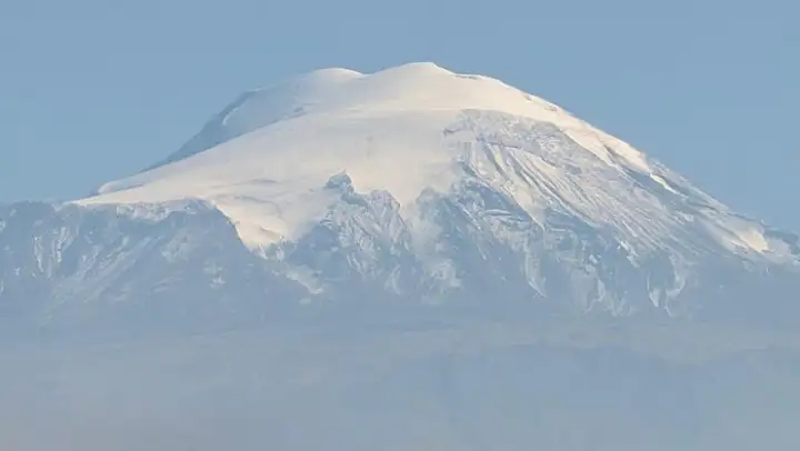 Yağan karla beyaz gelinliğini giyen Ağrı Dağı, Iğdır ovasının yeşili ve gökyüzünün maviliği ile bütünleşerek görenleri kendine hayran bıraktı.