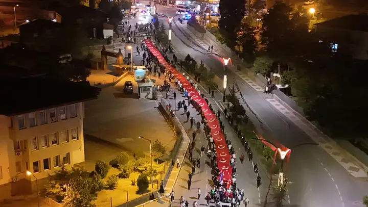 Ahlat İlçe Emniyet Müdürlüğü önünde toplanan vatandaşlar, ellerindeki Türk bayrağı ve meşalelerle yürüdü. Yürüyüşte atlı polisler, jandarma ve polis motosiklet ekipleri de korteje eşlik etti. Yoğun katılımın olduğu yürüyüş, Ahlat'taki Ulu Cami önünde sona erdi.