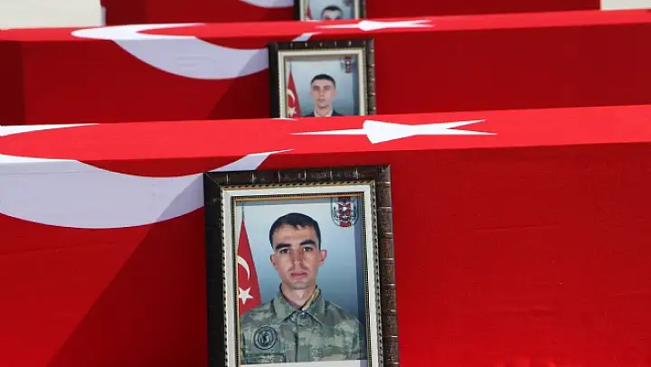 Hakkarinin Şemdinli ilçesinde askeri aracın geçişi sırasında meydana gelen patlamada şehit düşen dört asker için Vanda tören düzenleniyor.