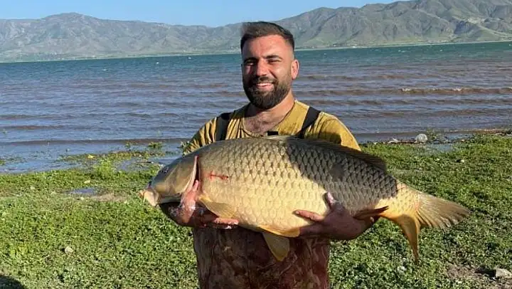 Elazığ'da amatör balıkçı, Keban Baraj Gölü'nde 32 kiloluk dev sazan balığı yakaladı.