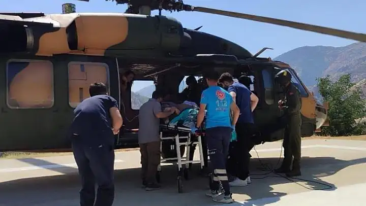 Hakkari'nin Şemdinli Devlet Hastanesi'nde tedavi gören hamile kadın, askeri helikopterle Van'a sevk edildi.