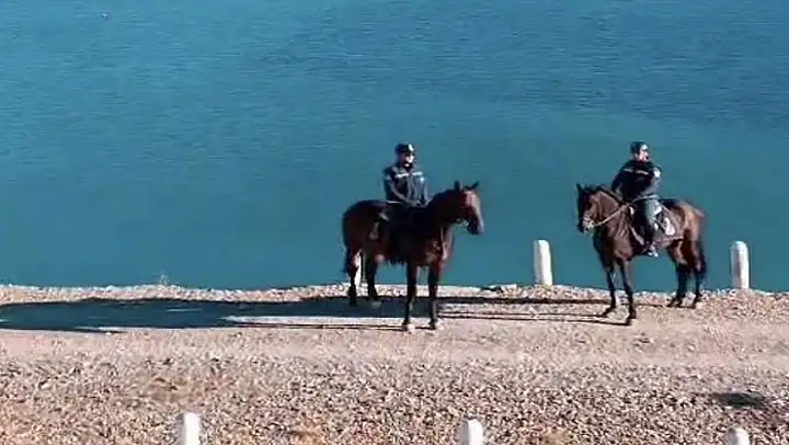 Van İl Jandarma Komutanlığına bağlı atlı jandarma timleri, Zernek Barajı çevresinde kaçak avcılığın önlenmesi ve çevre güvenliğinin sağlanması amacıyla devriye faaliyetlerini sürdürüyor.