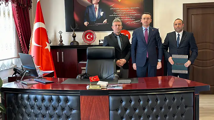 Van'ın Çaldıran Kaymakamı Süleyman Bakan, İlçe Nüfus Müdürü Faruk Denizhan ve Nüfus Müdürlüğü personeli Uğur Taşer'i makamında kabul etti.