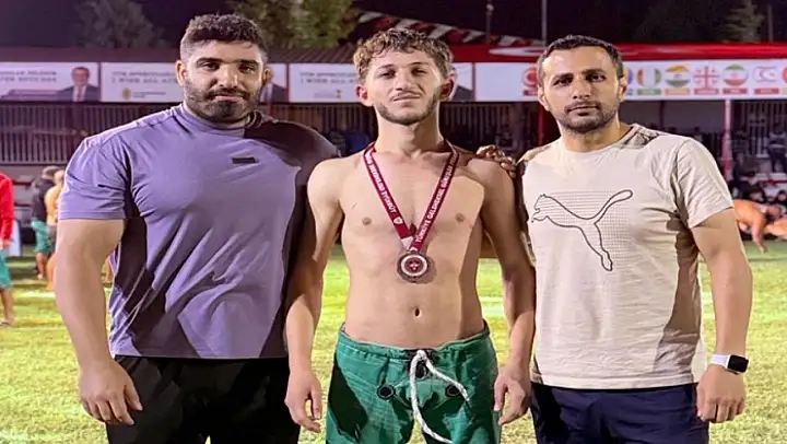Kahramanmaraş'ta düzenlenen Büyükler Şalvar Güreşi Türkiye Şampiyonası'nda Hakkârili Bedirhan Durğun, 55 kiloda Türkiye üçüncülüğü elde etti.