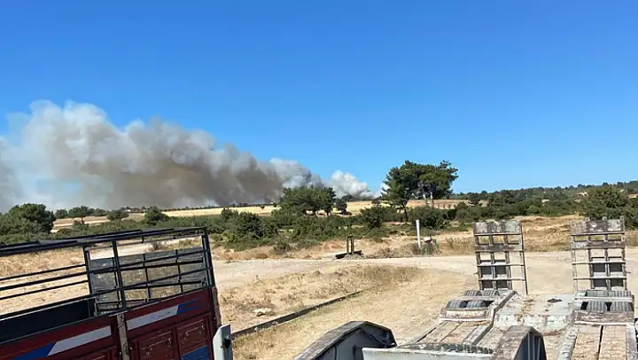 Çanakkale'nin Ezine ilçesinde çıkan orman yangınına Orman Bölge Müdürlüğü ekipleri havadan ve karadan müdahale ediyor.