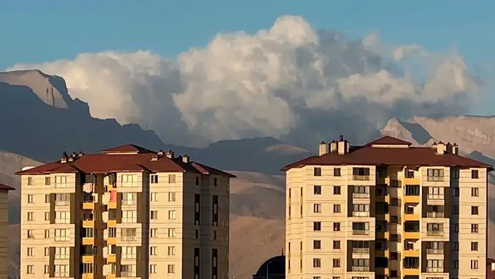 İlçenin en yüksek dağı olan ve heybetiyle mest eden Cilo Dağı, bünyesinde dört mevsimi bir arada barındırıyor. Göller, vadiler, buzullar ve dağ keçileri gibi tüm güzellikleri barındıran Cilo Dağları, özellikle sabah saatlerinde üzerine çöken bulutlarla eşsiz bir güzelliğe bürünüyor. 4 bin 130 metre rakımlı Cilo Dağı'nın üzerine çöken bulutlar ve hemen önünde konumlanan evler, muhteşem bir manzara oluşturdu.