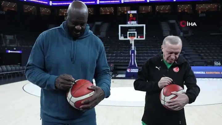 Cumhurbaşkanı Recep Tayyip Erdoğan, Amerikalı ünlü basketbol efsanesi Shaquille O'Neal ile İstanbul'da bir araya geldi. Cumhurbaşkanı Erdoğan, basketbol toplarını imzaladıkları anlara dair fotoğrafları kendi sosyal medya hesabından paylaştı.