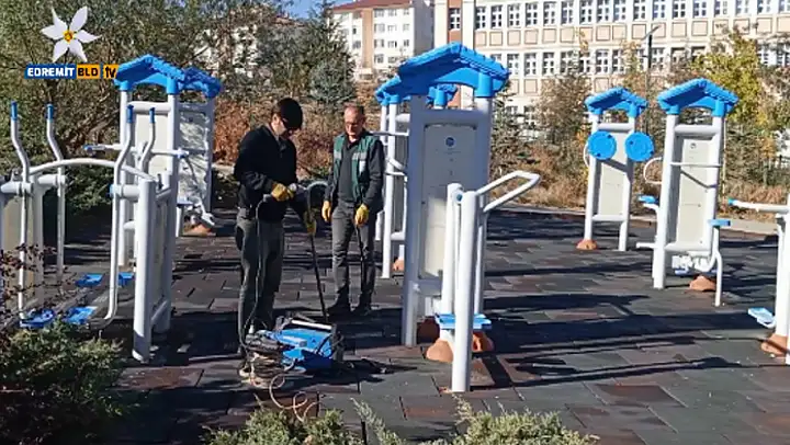 Edremit'te bulunan parklarda bakım onarım çalışmaları sürüyor.