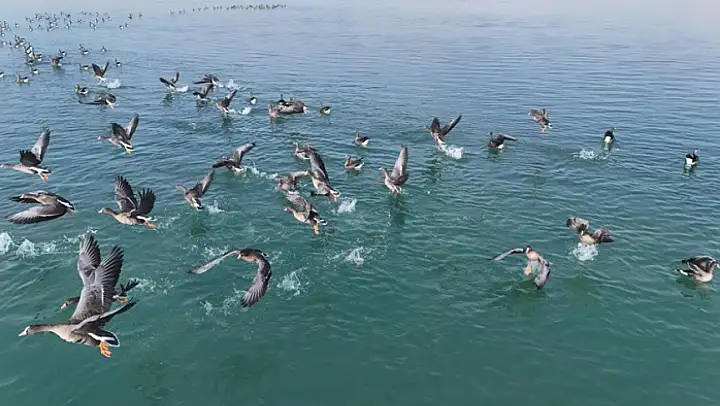 Gölge ve çevresinde konaklayan yüzlerce küçük sakarca kazı dron ile net bir şekilde kayıt altına alındı. Zarif görüntüleri ile Erçek Gölü'ne renk katan küçük sakarca kazları görsel şölen oluşturdu.