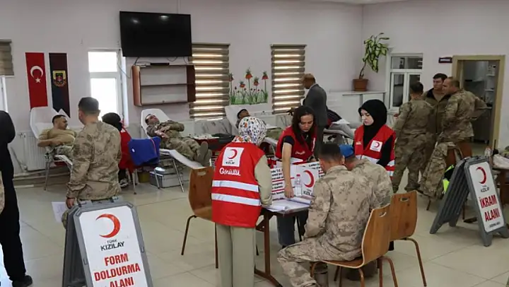 İl Jandarma Komutanlığında 6 Kasım 2025 tarihinde düzenlenen etkinlikte, Kızılay ekipleri tarafından kurulan mobil kan bağışı istasyonunda çok sayıda jandarma personeli gönüllü olarak kan verdi.