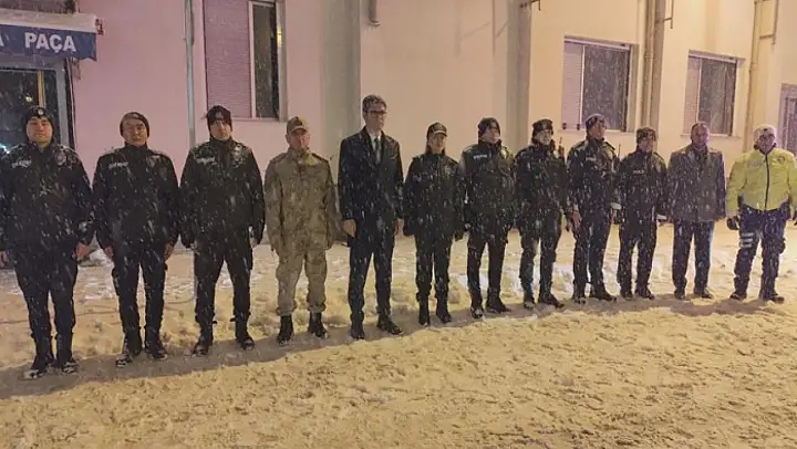 Kaymakam Karaloğlu, beraberinde İlçe Jandarma Komutanı Jandarma Yarbay Murat Geniş ve İlçe Emniyet Müdür Vekili Zeynep Erdoğan ile trafik uygulamalarının yapıldığı noktalarda emniyet ve jandarma mensupları, itfaiye çalışanlarını ziyaret etti. Güvenlik güçleri ve itfaiyecilerin yeni yılını tebrik eden Karaloğlu, baklava ikram ederek yeni yıllarını kutladı. Kaymakam Karaloğlu, '2026 yılana gireceğimiz bu saatte şehrimizin farklı noktalarında gerek emniyet birimlerimiz, gerek jandarma birimlerimiz görev yapıyor. Bugün burada insanlar yeni yılını kutlarken, siz de insanların, toplumun huzur ve sükûnet içerisinde bu güzellikleri yaşayabilmesi için fedakrlık ederek gece gündüz demeden çalışıyorsunuz. Rabbim ayağınıza taş değdirmesin. 2026 yılının Erciş'imize, Van'ımıza, memleketimize sağlıkla sıhhatle dolu bir yeni bir yıl olmasını temenni ediyoruz' dedi.