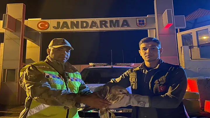 Van'ın Muradiye ilçesinde jandarma personeli tarafından bitkin halde bulunan kızıl şahin, tedavisi yapılmak üzere yetkililere teslim edildi.