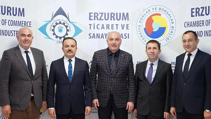 Sanayi ve Teknoloji Bakanlığı Stratejik Araştırmalar ve Verimlilik Genel Müdürü Abdullah Başar, Genel Müdür Yardımcısı Hakan Erten, Daire Başkanı Yücel Özaran ve Erzurum Sanayi ve Ticaret İl Müdürü Ender Cihan Timur, ETSO'yu ziyaret ederek TOBB Yönetim Kurulu Üyesi ve ETSO Başkanı Saim Özakalın ile bir araya geldi.