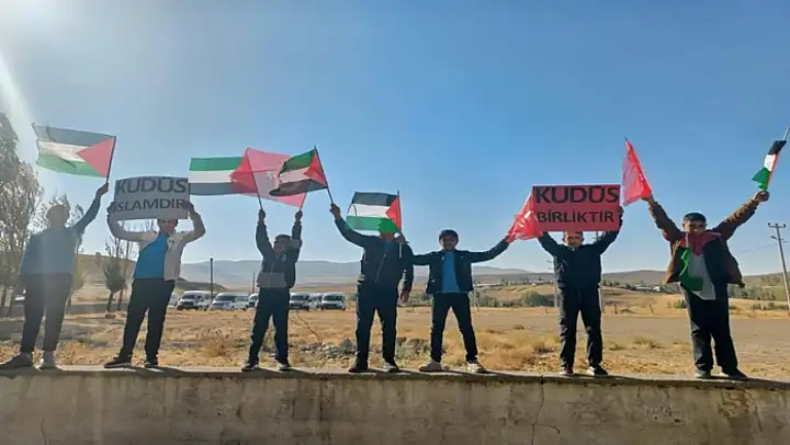 Van'ın Özalp ilçesindeki Emek Ortaokulu, Filistin'e destek etkinlikleri kapsamında yardım kampanyası düzenledi.