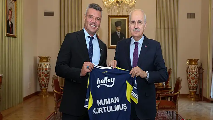 Fenerbahçe Başkanı Sadettin Saran ve Yönetim Kurulu Üyesi Taner Sönmezer, Türkiye Büyük Millet Meclisi (TBMM) Başkanı Numan Kurtulmuş'u ziyaret etti. Başkan Saran, ziyaretin sonunda TBMM Başkanı Numan Kurtulmuş'a isminin yazılı olduğu Fenerbahçe formasını takdim ederken, Numan Kurtulmuş da bu nazik ziyaretten dolayı teşekkür etti.