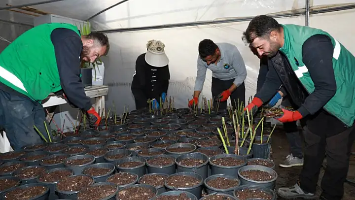 İpekyolu Belediyesi Park ve Bahçeler Müdürlüğü, kış sezonuyla birlikte üretim alanları olan seralarda çelikle gül fidesi çoğaltma çalışmalarına başladı.