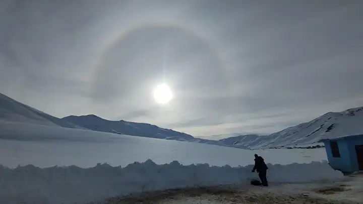 Van semalarında nadir görülen ve halk arasında 'Güneş Halkası' olarak bilinen doğa olayı gerçekleşti.