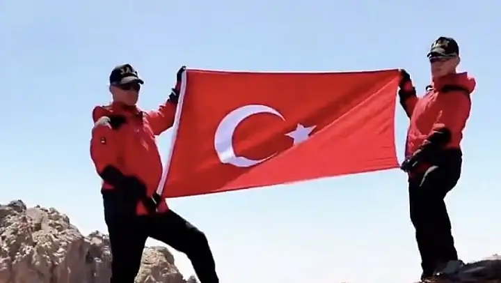 Van İl Jandarma Komutanlığına bağlı Jandarma Arama Kurtarma Tim Komutanlığı (JAK) ekipleri, 3180 rakımlı Erek Dağı'na tırmanarak Türk bayrağını zirvede dalgalandırdı.