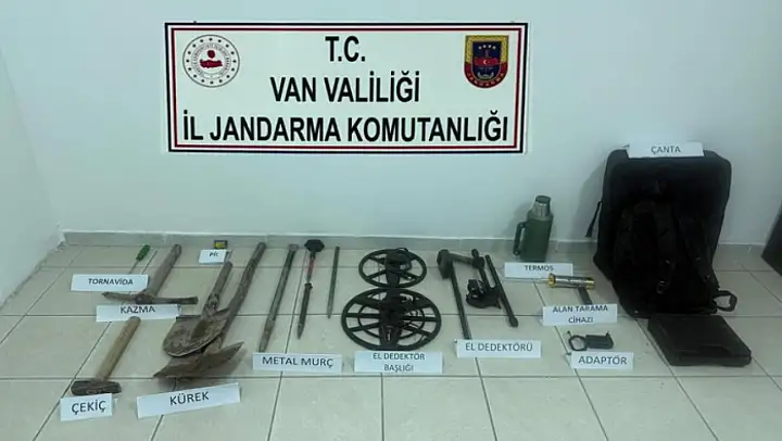Van Valiliği'nden yapılan açıklamada, İl Jandarma Komutanlığı Tuşba İlçe Jandarma Komutanlığı tarafından Yeşilsu Mahallesi'nde operasyon düzenlendiği belirtildi. Açıklamada, 'B.I. (40) ve E.A. (34) isimli şahısların tarihi eser bulmak amacıyla Amik Kalesi yakınlarında kazı yaptıkları esnada düzenlenen faaliyet neticesinde 1 adet el detektörü, 1 adet alan tarama cihazı, 4 adet pil, 1 adet kazma, 1 adet çekiç, 1 adet kürek, 4 adet demir murç, 1 adet tornavida, 1 adet termos, 1 adet şarj kablosu, 1 adet detektör taşıma çantası, 1 adet alan tarama cihazı taşıma çantası ele geçirilerek muhafaza altına alınmıştır. Şüpheli B.I. (40) ve E.A. (34) isimli şahıslar hakkında 2863 Sayılı Kanuna Muhalefet suçundan adli işlem yapılmıştır' denildi.