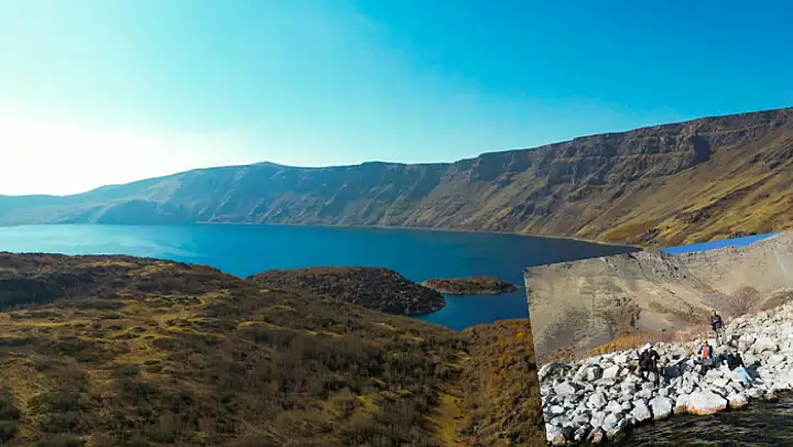 Farklı renk tonlarının hkim olduğu bölgede, dağların ve krater gölünün birleştiği manzaralar görenleri büyülüyor.