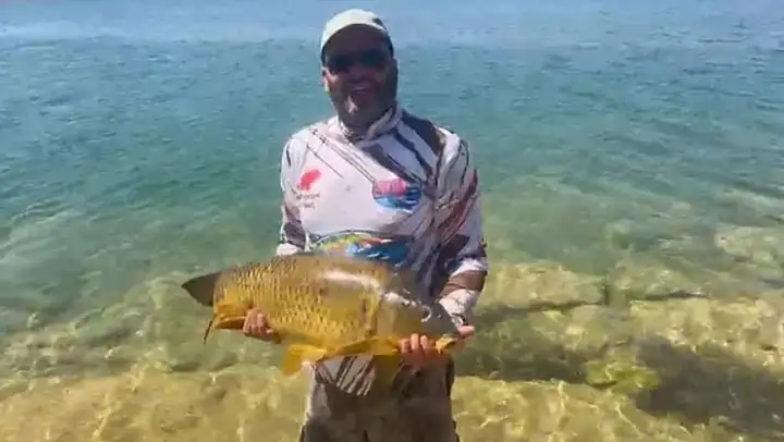 Elazığ'da amatör olta balıkçılarından Murat Şimşek'in oltasına Keban Barajı'nda yaklaşık 15 kiloluk sazan balığı takıldı. Dev sazan balığını oltayla kıyıya getiren Murat Şimşek ve arkadaşları balığın anaç bir balık olduğunu fark etti. Murat Şimşek bunun üzerine kucağına aldığı balığı öperek daha sonra suya tekrar bıraktı.