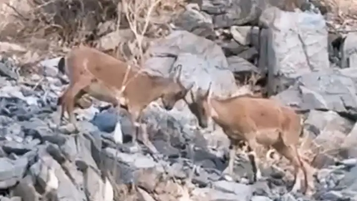 Hakkari'nin Yüksekova ilçesine bağlı Dağlıca köyünde, iki yavru dağ keçisinin kayalıklar üzerindeki sevimli çekişmesi kameralara yansıdı.