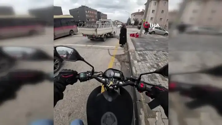 Eskişehir'de yoğun trafikte yolun karşısına geçemeyen yaşlı kadına, trafikte seyir halindeki motosiklet kullanıcısı yardım etti.