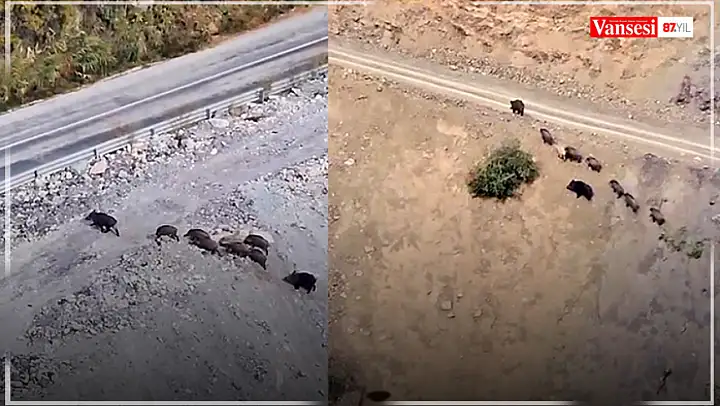Zaman zaman ilçe merkezi ve köylerde görülen yaban domuzları, öğle saatlerinde köy yakınlarında gezerken bir vatandaş tarafından cep telefonu kamerasıyla kaydedildi. Domuz sürüsünü köy yakınlarından geçerken fark eden Tacettin Çınar, sürünün muhtemelen açlık nedeniyle bu kadar yerleşim yerine yaklaştığını belirtti. Çınar, 'Köy yakınlarında geçen domuz sürüsünü gördük. Biz de o anları hemen kayıt altına aldık. Biraz bekledikten sonra domuz sürüsü uzaklaşarak gözden kayboldu' dedi.