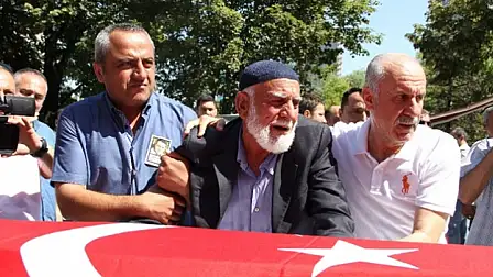 Darbe girişiminde hayatını kaybeden Jeoloji Mühendisi Cuma Dağın cenaze töreninde 6 yaşındaki oğlu Ahmet Dağ babasının tabutunun başında gözyaşı döktü.