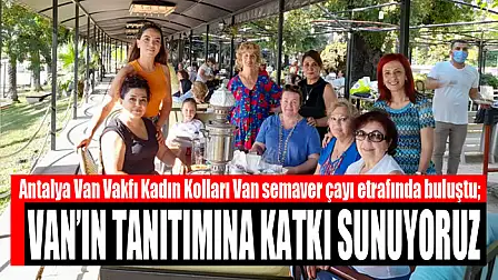 Antalya'da Van'ın tanıtımına, kültürüne yönelik çalışmalar yapan, Vanlıların ve Van'a gönül veren Van dostlarının birlik beraberliğine katkı sunan Antalya Van Vakfı Kadın Kolları, Van semaver çayı etkinliğinde buluştu. Kadın Kolları Başkanı Serpil Dede, 'Çeşitli kültürel ve sosyal etkinlikler düzenleyerek Van'ı ve kültürünü tanıtıyoruz. Vanlılar ve Van'a gönül veren dostlar arasında birlik beraberlik ve dayanışmayı sağlamak, hemşehrilerimizin ve dostlarımızın kaynaşmalarını, sosyo ekonomik, kültürel düzeylerini yükseltmek için çalışmalarımız sürüyor' dedi.