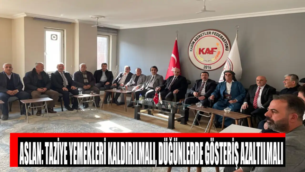 Kadim Aşiretler Federasyonu Genel Başkanı Rasim Aslan, son yıllarda taziye yemeklerinin büyük külfet oluşturduğunu ve düğünlerdeki gösterişlerin de masrafları artırdığını belirterek, 'Öyle bir hale geldi ki, taziye ve düğün giderleri çok ağır bir külfete dönüştü. Bu konuda herkesin elini taşın altına koyması lazım' ifadelerini kullandı.