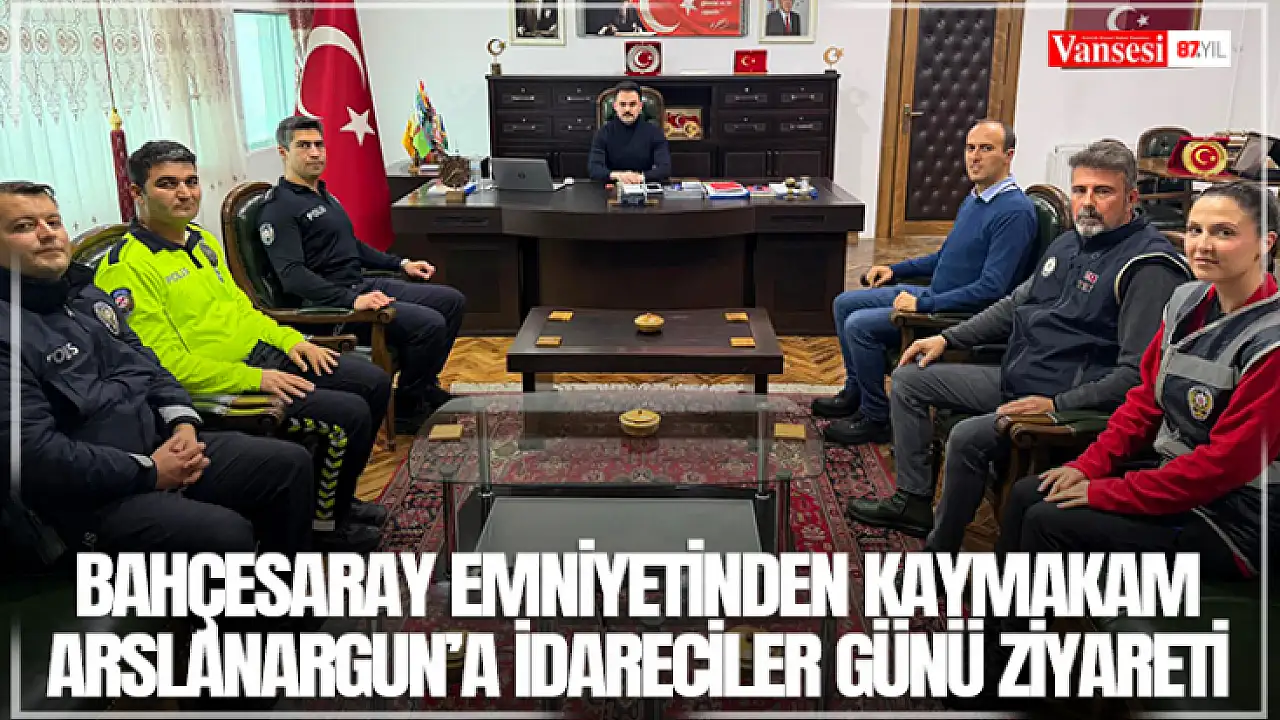 Van’ın Bahçesaray İlçe Emniyet Amiri Başkomiser Oben Ardıç ve beraberindeki emniyet personelleri, 10 Ocak İdareciler Günü vesilesiyle Kaymakam ve Belediye Başkan Vekili Harun Arslanargun’a nezaket ziyaretinde bulundu.