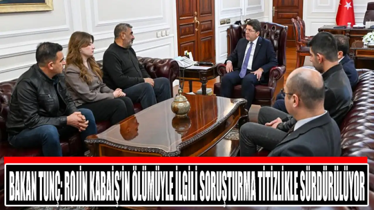 Adalet Bakanı Yılmaz Tunç, Van'da hayatını kaybeden üniversite öğrencisi Rojin Kabaiş'in babası Nizamettin Kabaiş, ağabeyi ve amcasıyla Bakanlıkta bir araya geldi. Bakan Tunç, 'Rojin Kabaiş'in ölümüyle ilgili soruşturma titizlikle sürdürülüyor' dedi.