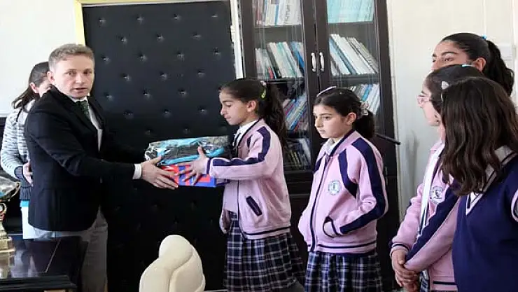 Vanın Muradiye Kaymakamı Erol Tanrıkulu, Atatürk Ortaokulu Beden Eğitimi Öğretmeni Emin Koyun ve öğrencilerini makamında kabul etti.
