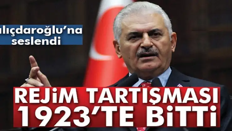 Başbakan Binali Yıldırım, 'Ey Kılıçdaroğlu, rejim tartışması 1923te bitti. Cumhuriyeti tartışan kimse yok, olsa da önce karşısına çıkan AK Parti olur, bunu da bil. Biz rejimi değil anayasayı değiştirmek istiyoruz. Vesayet anayasasını değiştirmek istiyoruz' dedi.
