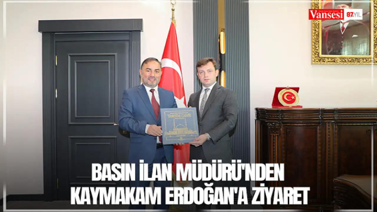 Başkale Kaymakamı Muhammet Serdar Erdoğan, Basın İlan Kurumu Bölge Müdürü Dr. Çetin Oranlı'yı makamında kabul ederek nazik ziyaretinden dolayı teşekkür etti.