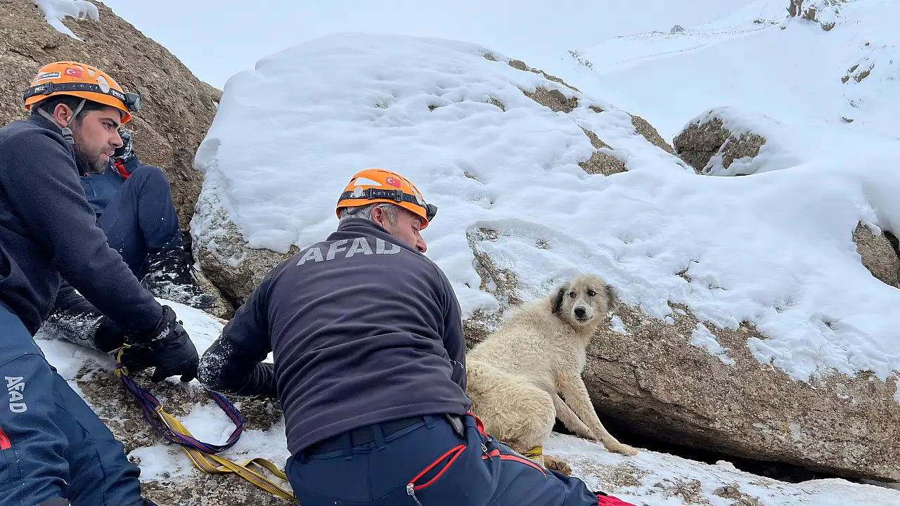 Van'ın Başkale ilçesine bağlı Yukarıdikmen Mezrası'nda dağlık ve kayalık arazide bir köpeğin mahsur kaldığı yönünde yapılan ihbar üzerine ekipler harekete geçti.