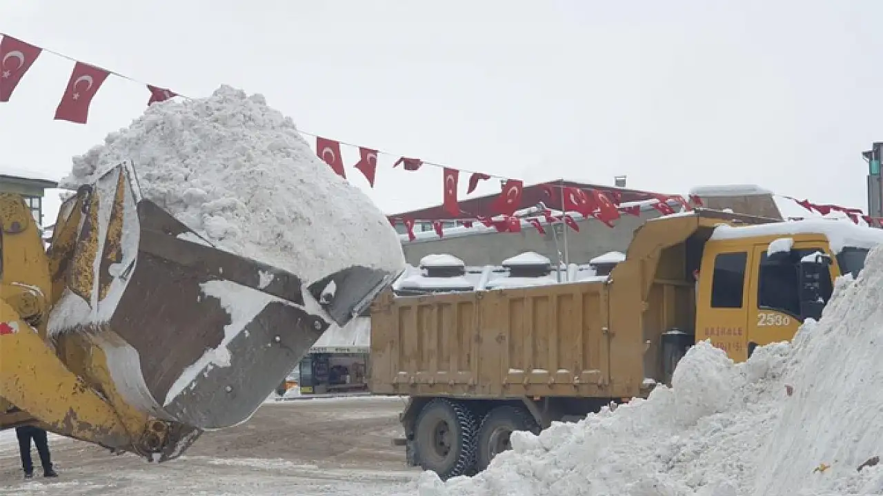 Başkale'de kış sert geçiyor, kar yığınları kamyonlarla ilçe dışına taşınıyor