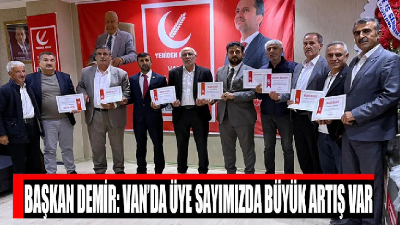 Yeniden Refah Partisi Van İl Başkanı Yakup Demir, Van'da üye sayılarında rekor artış olduğunu belirterek, 'Allah'ın izniyle Yeniden Refah Partisi olarak çok büyük bir gayret göstererek üye sayımızı yüzde elliye yakın artırdık. Bu konuda emeği geçen tüm yönetici arkadaşlarım ve ilçe başkanlarıma teşekkür ediyorum' ifadelerini kullandı.