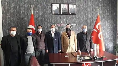 Van Güvenlik Korucuları Şehit ve Gazi Aileleri Federasyonu Başkanı Ayhan Kahraman ve Yönetimi MHP Van İl Başkanı Salih Güngöralp'ı makamında ziyaret etti.
