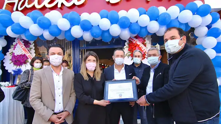 İşletme sahibi Hale Yörük Esen'e Başkan Takva, tarafından "İş Yeri Siftah Sertifikası" takdim edildi.