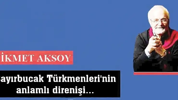 Bayırbucak Türkmenleri'nin direnişini buradan selamlamak ve dikkatle izlemek durumundayız. Bu direniş, yüzyıl önce Çanakkale'de yapılan vatanı savunma azminin/kararlılığının bugüne yansıyan bir örneği oluşu nedeniyle çok anlamlı ve de Türk'ün yaşanan çağa yazacağı bir ayrı destan olma özelliği ve önemi taşıyor.