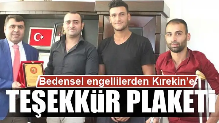 Bedensel engellilerden Kırekin'e teşekkür plaketi