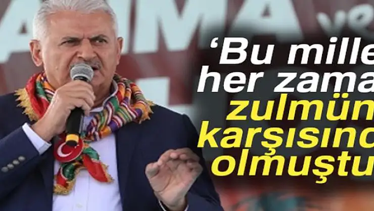 Başbakan Yıldırım, ‘bu millet her zaman zulüm karşısında adaletin yanında olmuştur’ dedikten sonra konuşmasının devamında şunları söyledi: